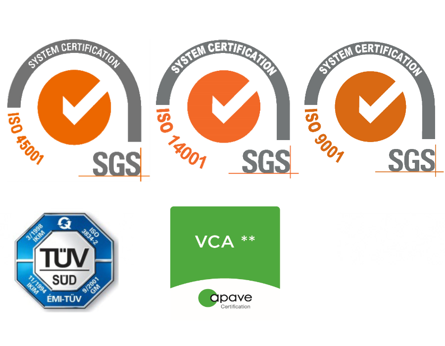 Munkatársasink a vállalat működtetését integrált irányítás rendszer üzemeltetésével végzik. Ez magába foglalja az ISO 9001 minőségmenedzsment, ISO 14001 környezetmenedzsment és ISO 45001 egészség és biztonságtechnika menedzsment szabványok együttes alkalmazását.